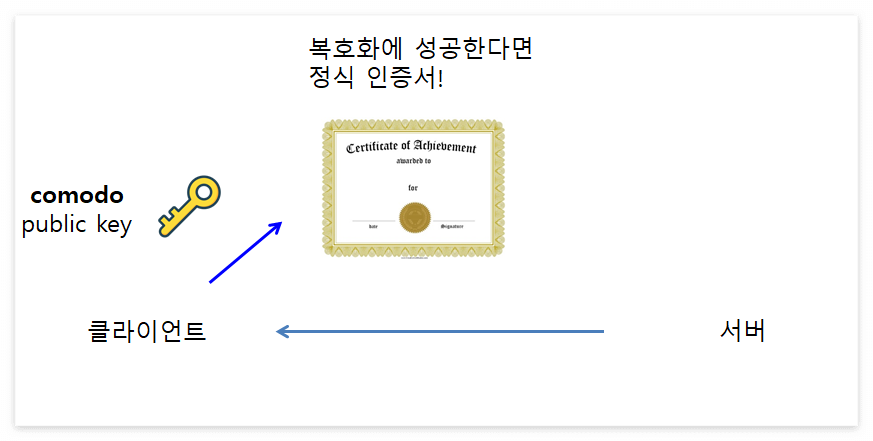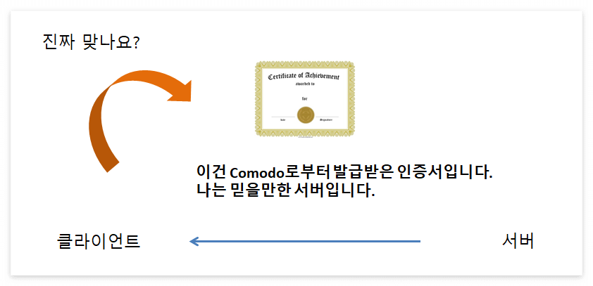 "아, 이 쇼핑몰 서버는 comodo로부터 인증서를 부여받은 신뢰 가능한 서버구나!"라고 알 수 있게 되는 것입니다.