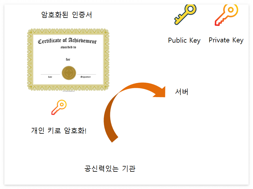 여기서 바로 , 공신력이 있는 기관은 인증 기관(Certificate Authority)를 의미하며,
